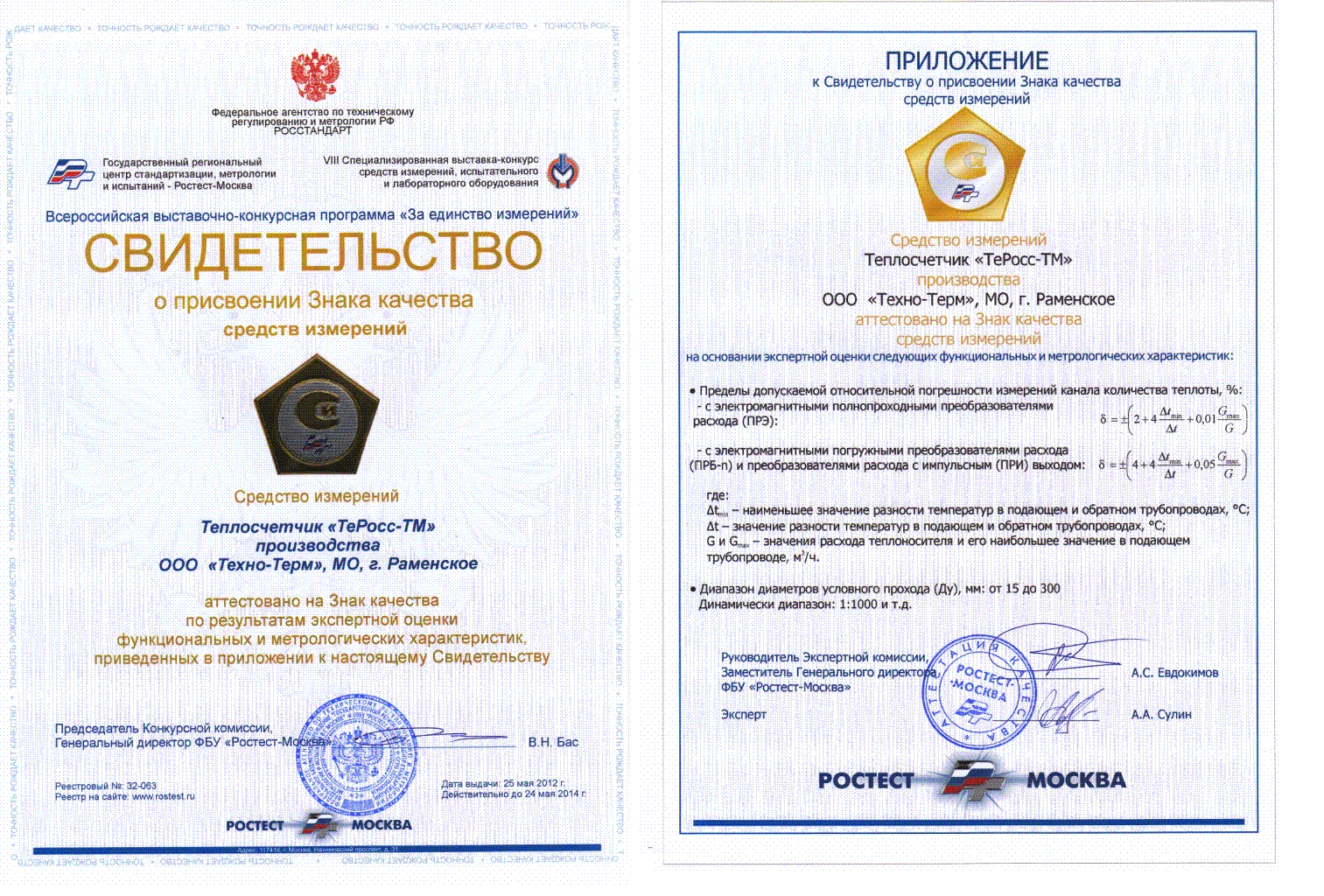 Свидетельство о присвоении Знака качества 2012