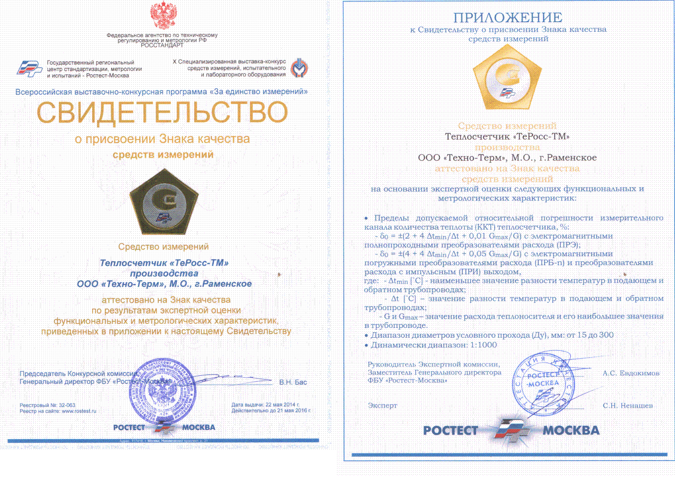 Сертификат Признания утвержденного типа средств измерений Теплосчетчики ТеРосс-ТМ на территории Республики Узбекистан